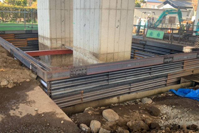 鋼板に波付け加工し、四辺にフランジを設けた構造部材です。下水道などの立坑や深礎の既設土留め材として、また、地すべりの抑制工である集水井として使用されています。
