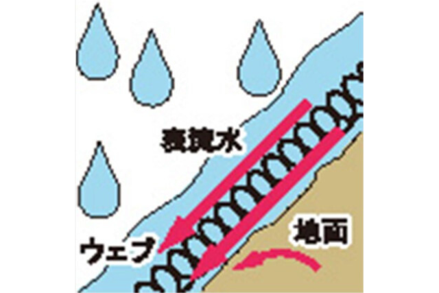 植物の毛細根に似た極細の撥水性繊維をランダムに配した不織布シートで、傾斜面裸地を覆うことにより土壌侵食の防止を図れます。