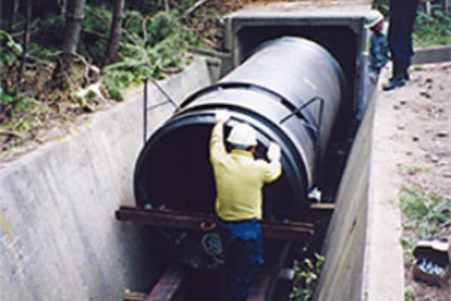 スパイラルワインディング成形によって作られる高耐圧ポリエチレン管です。軟弱地盤や急傾斜地の配管をはじめ地下排水管、樋管、管更生など広く用いられています。