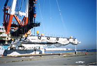 陸地から遠く離れたところや、台風の多いところ、船の出入りの多いところに使用されます。海底に沈める事によりフェンスの損傷を防ぎ、また短時間に沈下、浮上できるので、船舶の出入りに便利です。 レンタル品もございます。